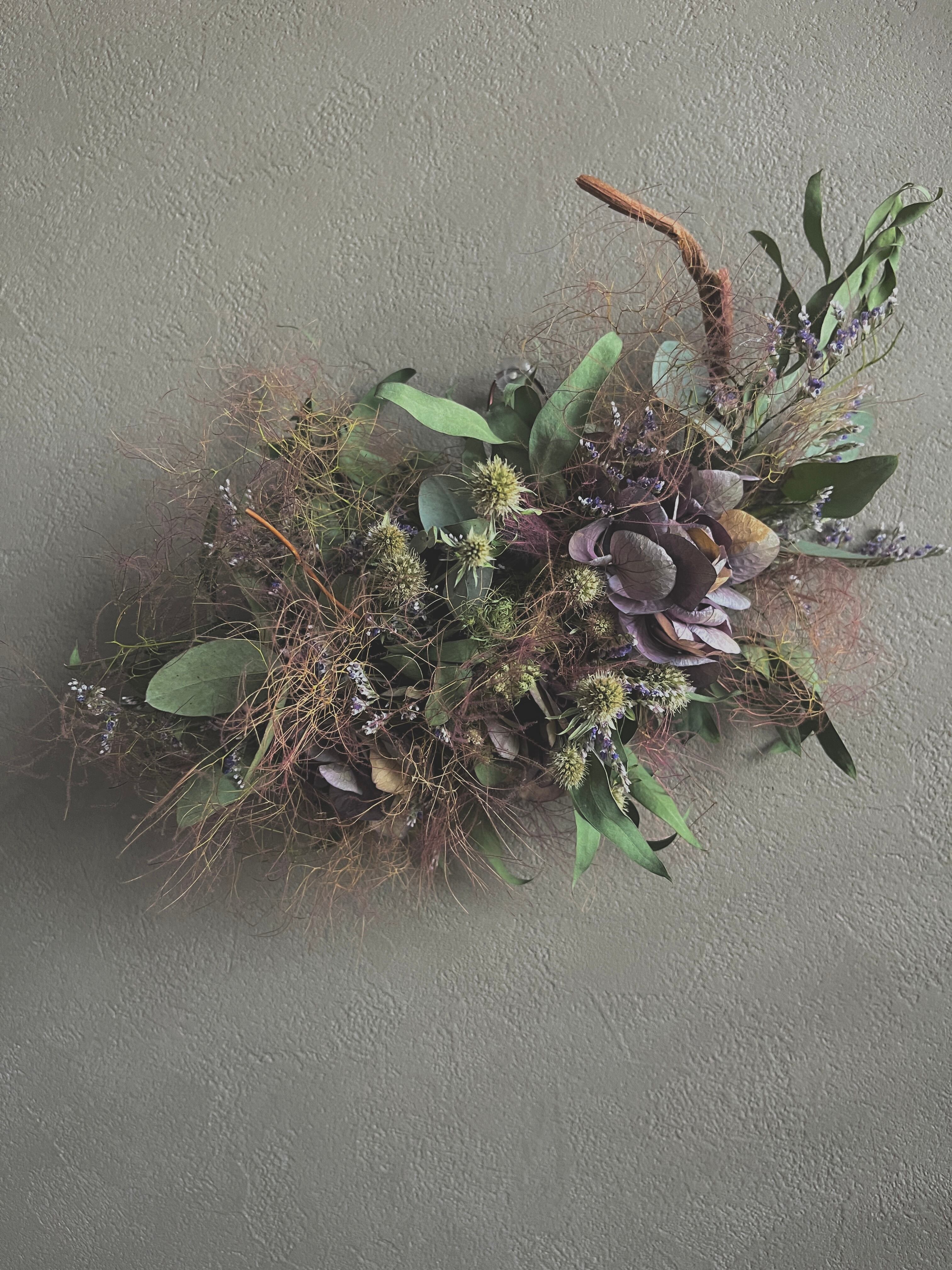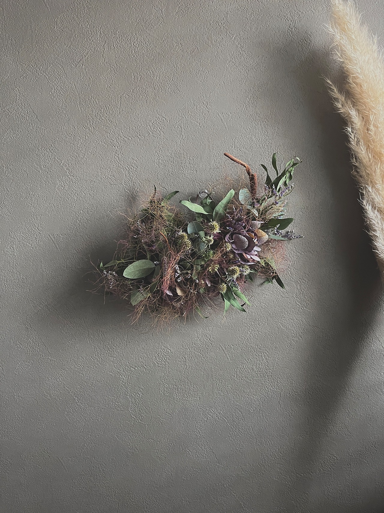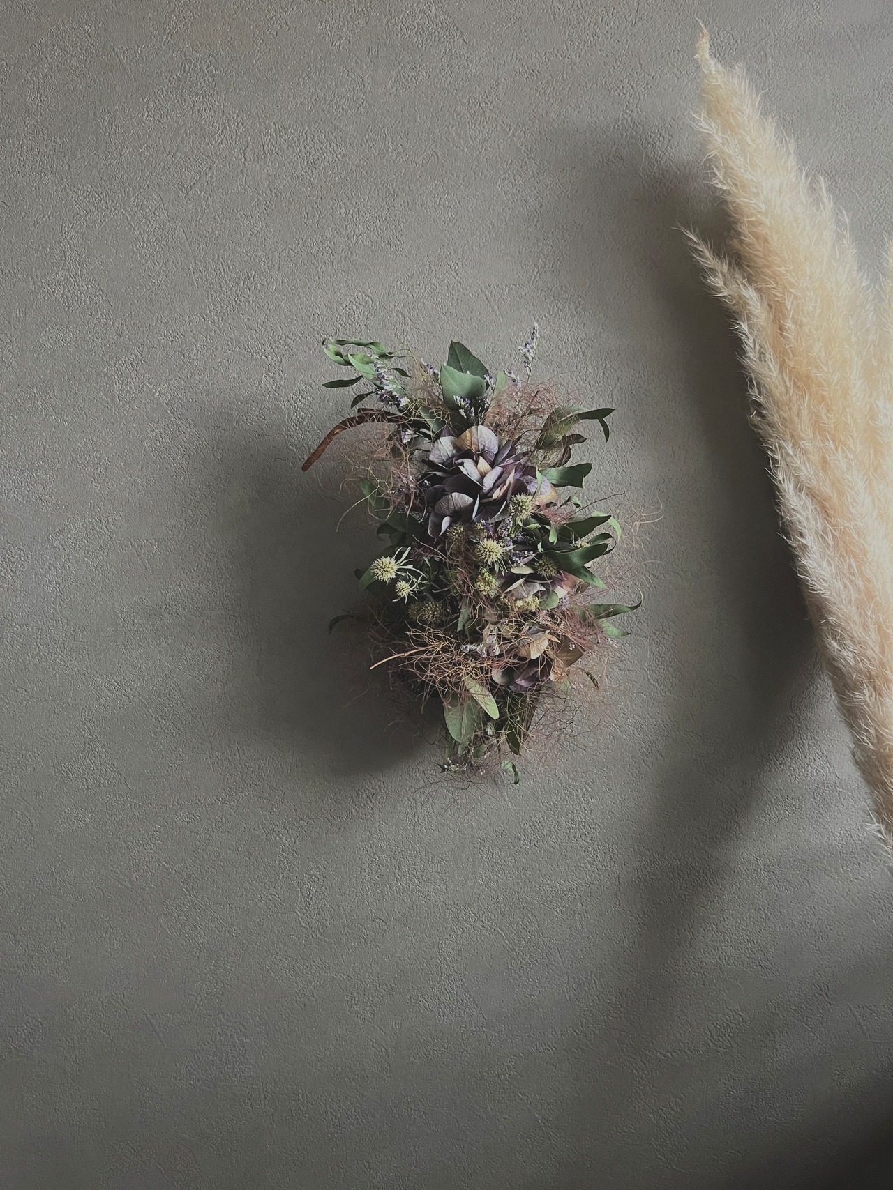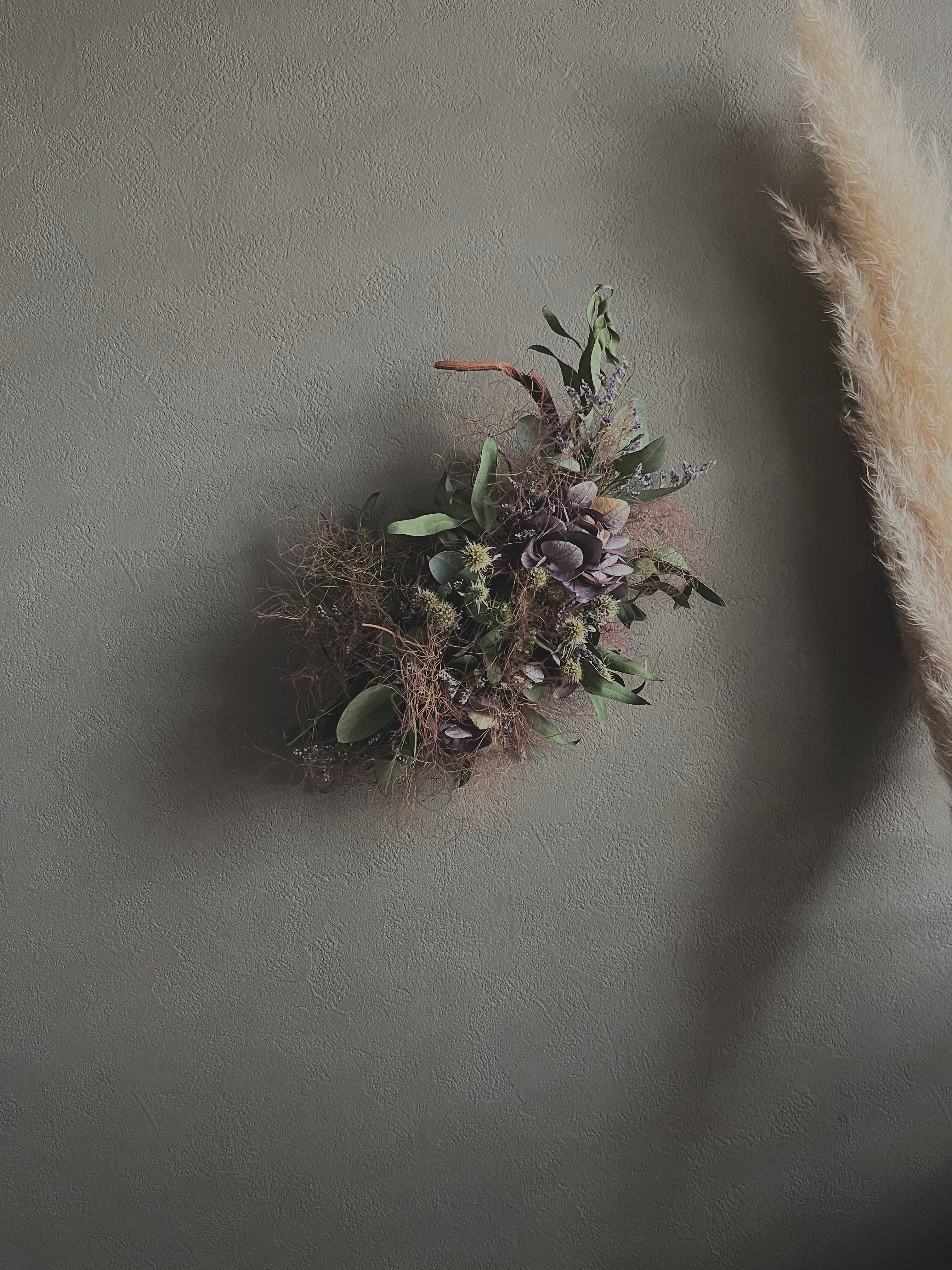 【お取り扱いについて】 自然素材の為、日々お色味が変わっていきます。 褪色することで、より一層深みのある表情が生まれますので、ドライフラワーの魅力をじっくりとお楽しみください。 また、直射日光や湿気には弱いため、保管には十分ご注意をお願いします。不適切な保存はカビの原因となることがありますので、乾燥した場所でのご使用をお勧めいたします。 配送時やごディスプレイ時には花や葉が落ちる可能性がございますので、その点もご了承の上でご購入ください。