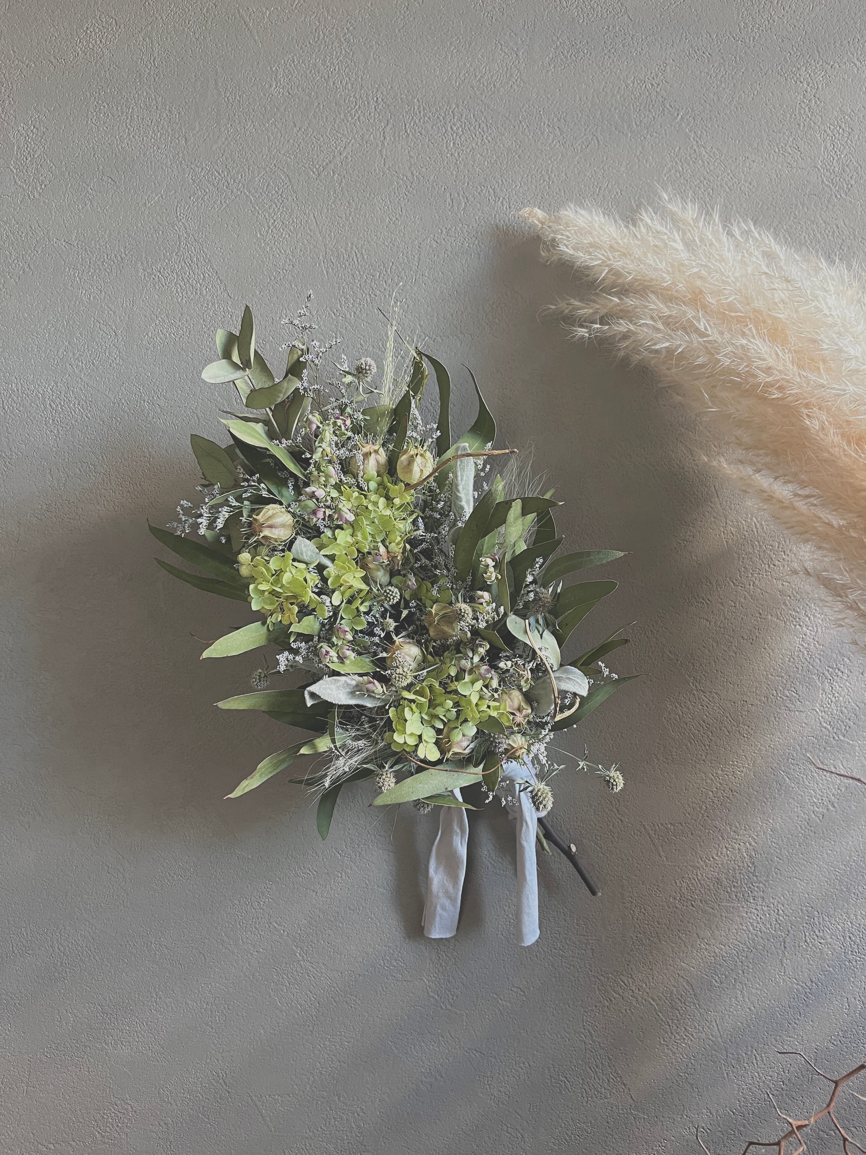 また、ドライフラワーは直射日光や湿気を苦手としております。湿気の多い場所での使用や保管はカビの原因となりますのでご注意ください。