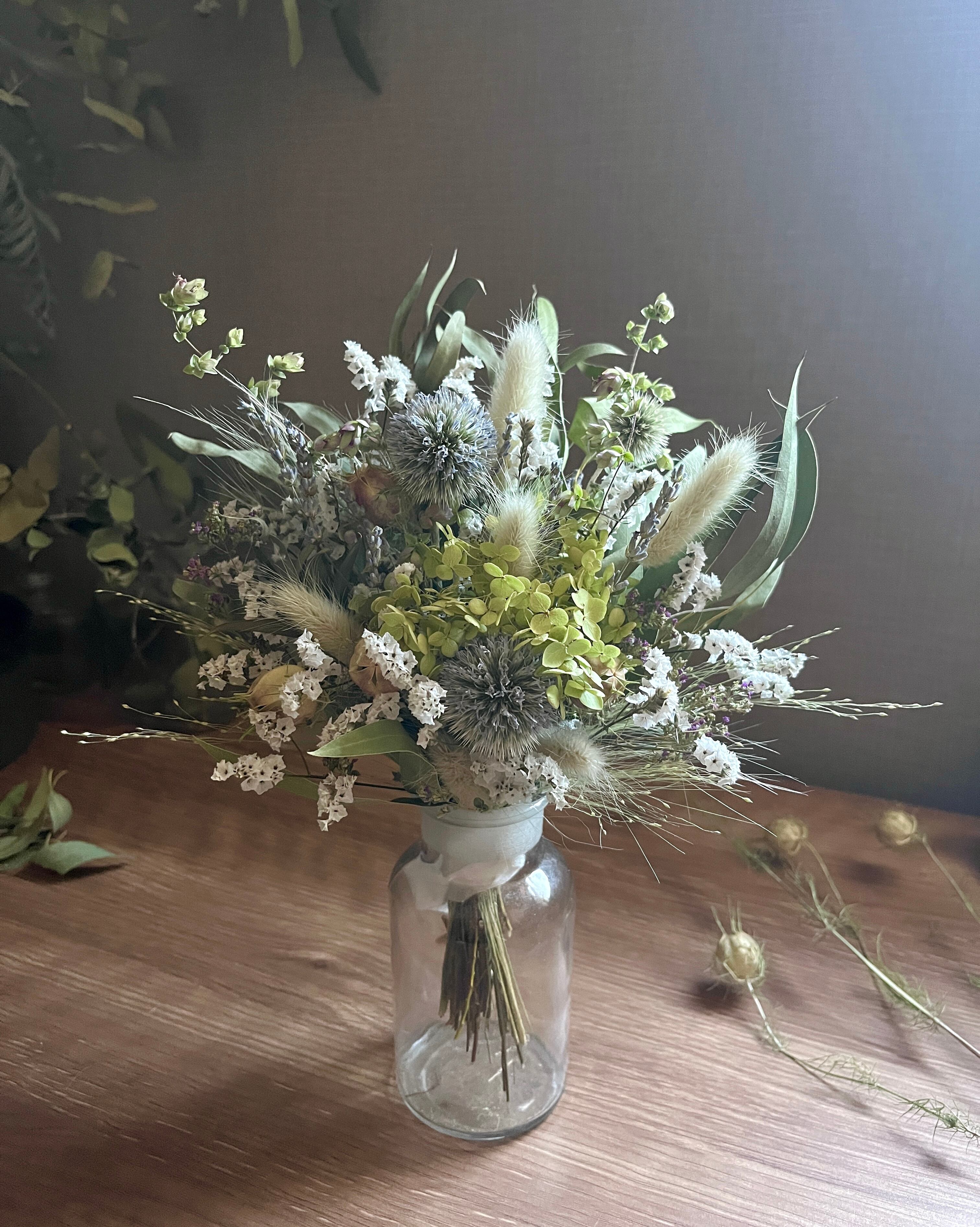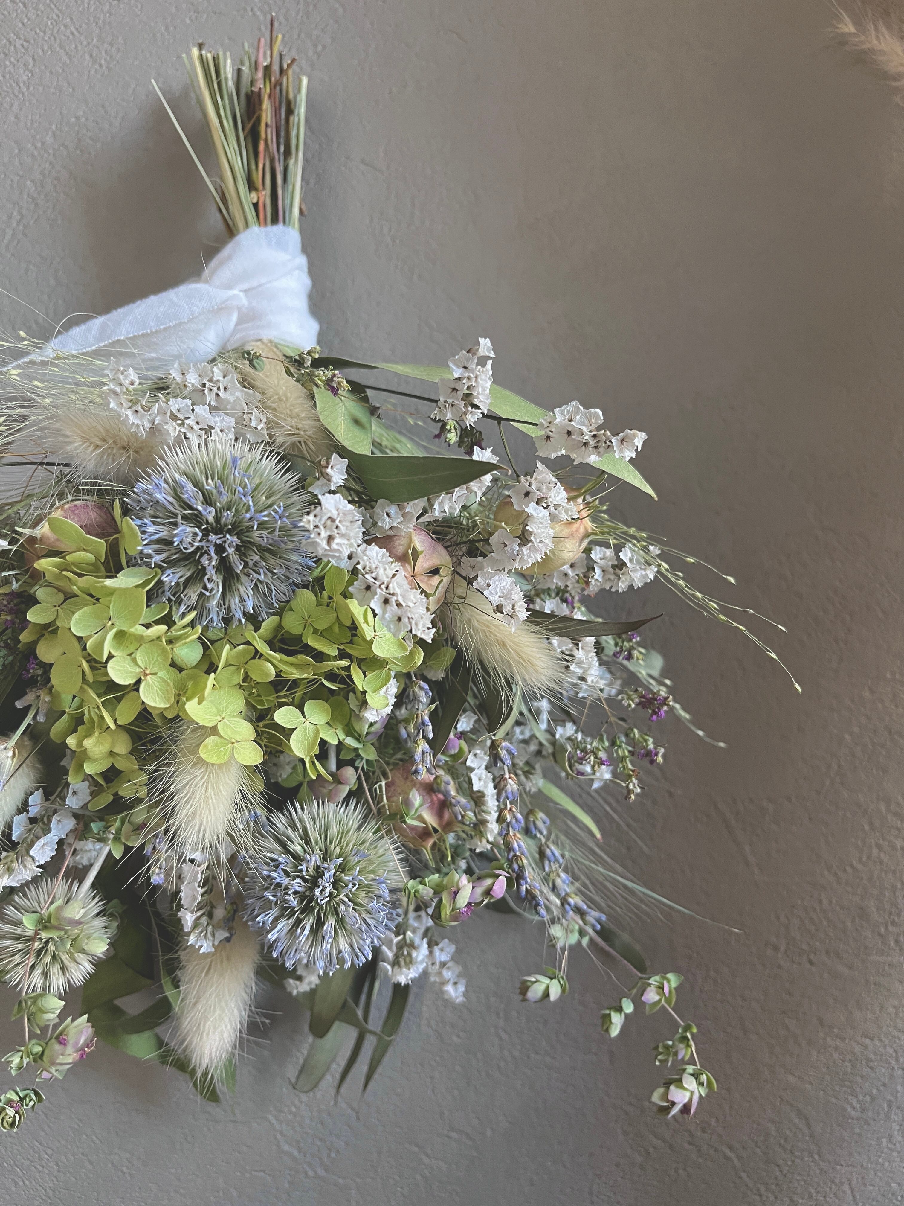 また、ドライフラワーは直射日光や湿気を苦手としており、湿気の多い場所での使用や保管はカビの原因となりますのでご注意ください。