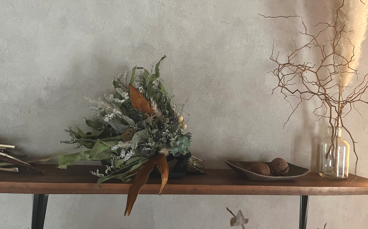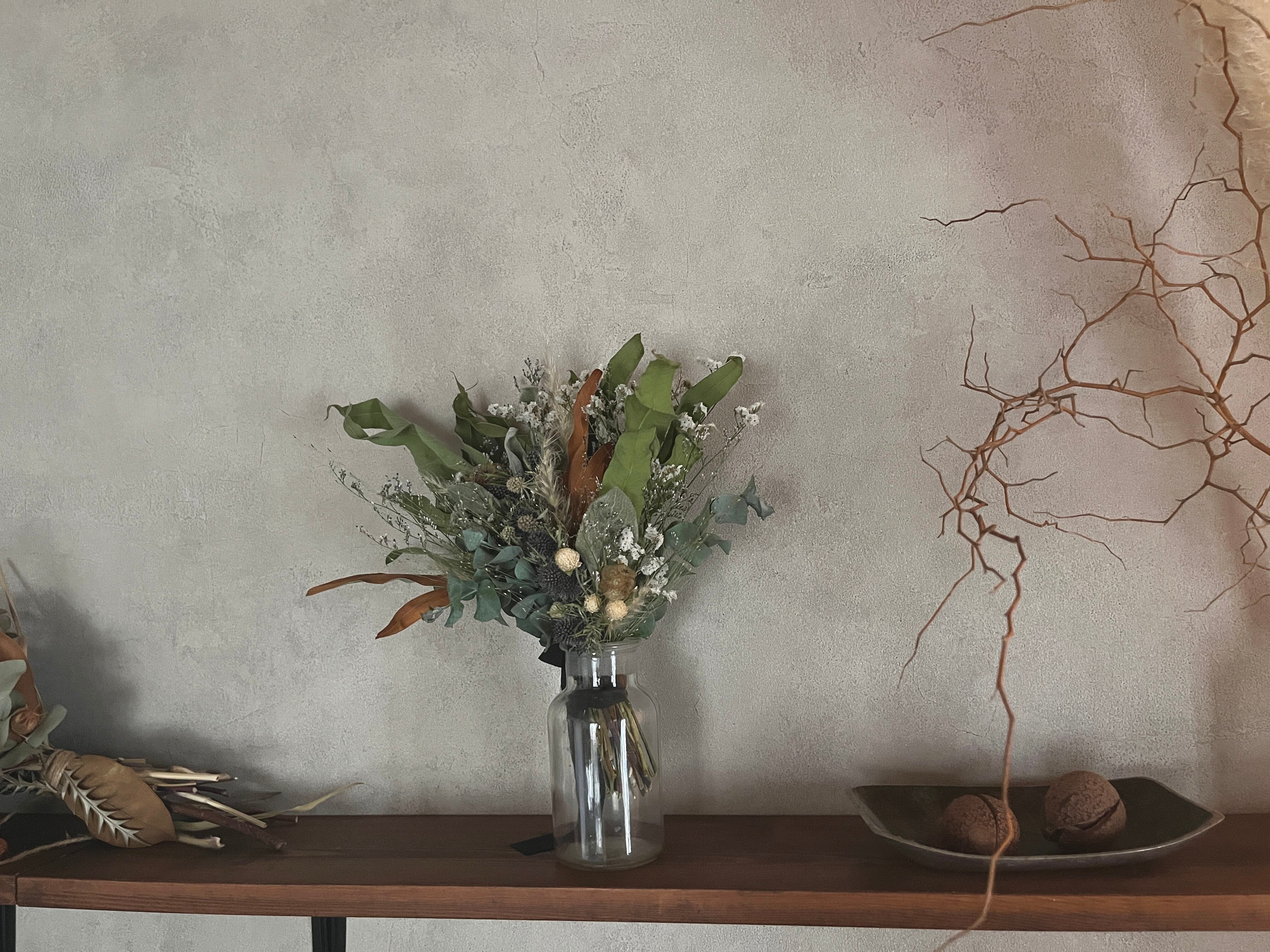 自然素材のため、日々お色味が変わっていきます。褪色が進むことで、より一層の趣が増しますので、ドライフラワーの変化をぜひお楽しみください。