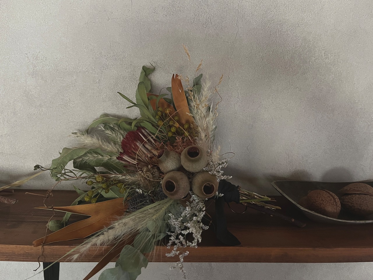 自然素材のため、日々お色味が変わっていきます。褪色が進むことで、より一層の趣が増しますので、ドライフラワーの変化をぜひお楽しみください。