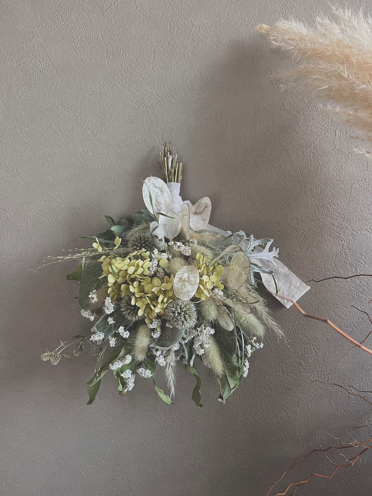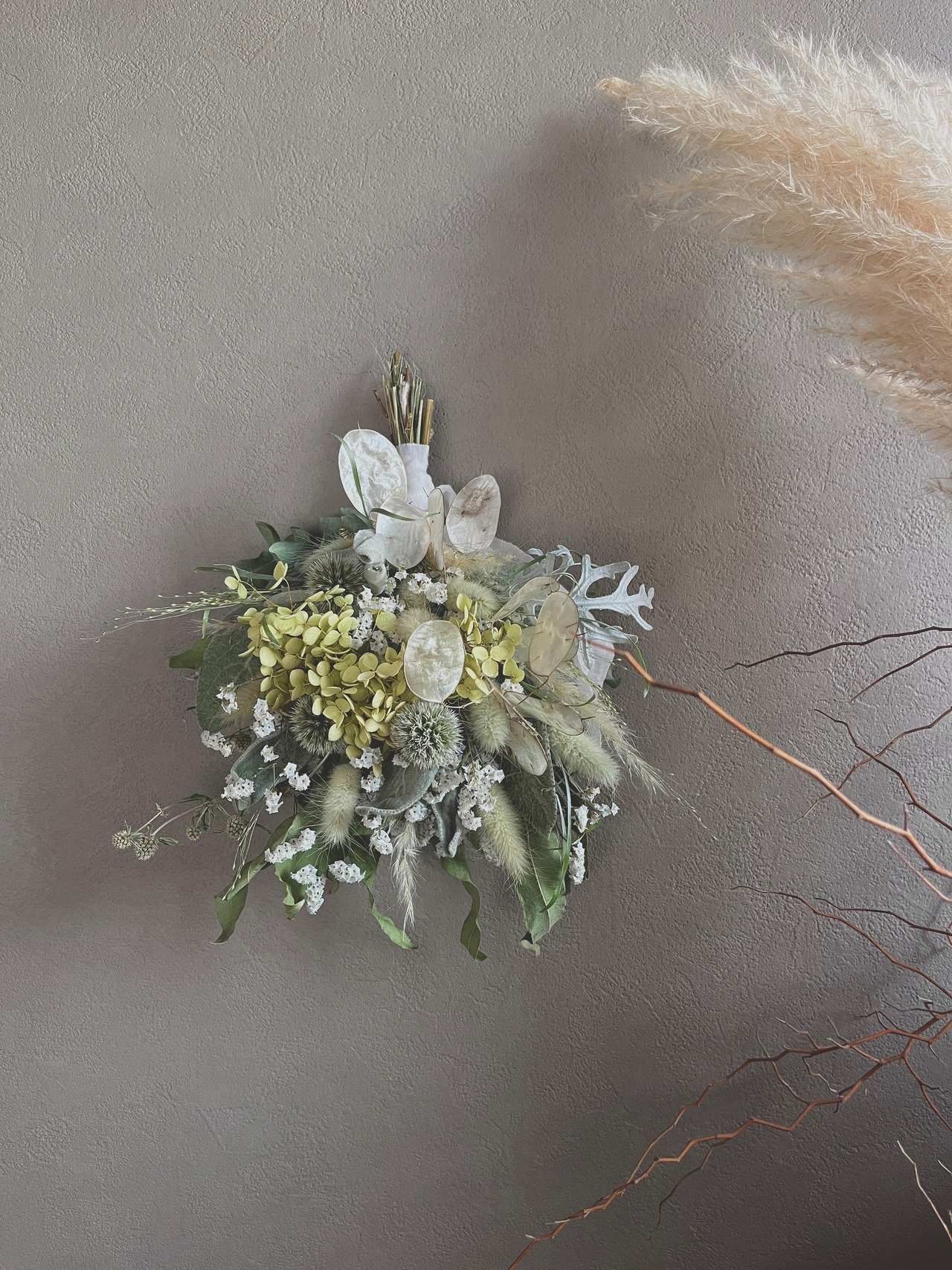 自然素材のため、日々お色味が変わっていきます。褪色が進むことで、より一層の趣が増しますので、ドライフラワーの変化をぜひお楽しみください。