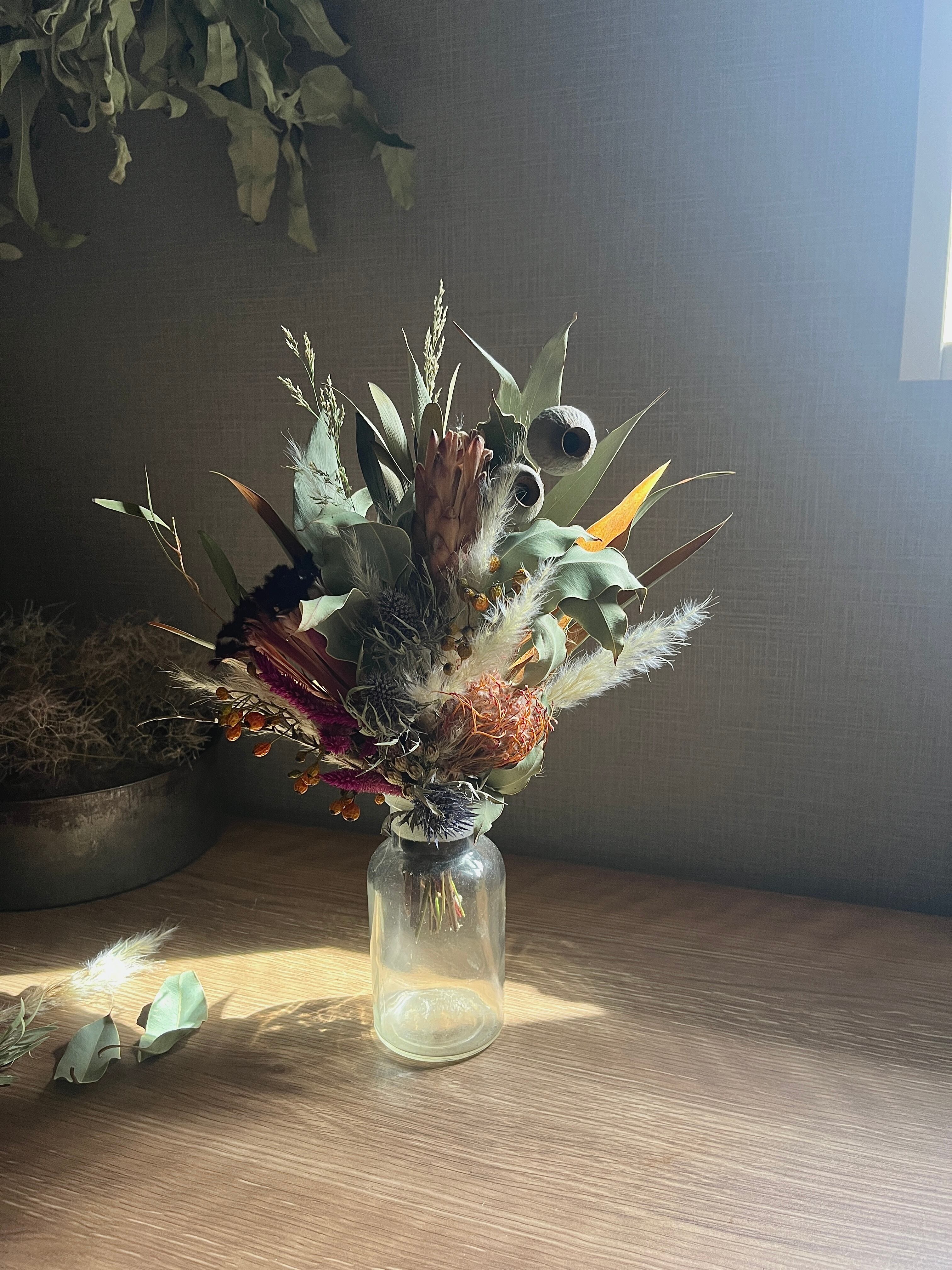 また、ドライフラワーは直射日光や湿気を苦手としておりますので、湿気の多い場所での使用や保管はカビの原因となります。ご注意ください。