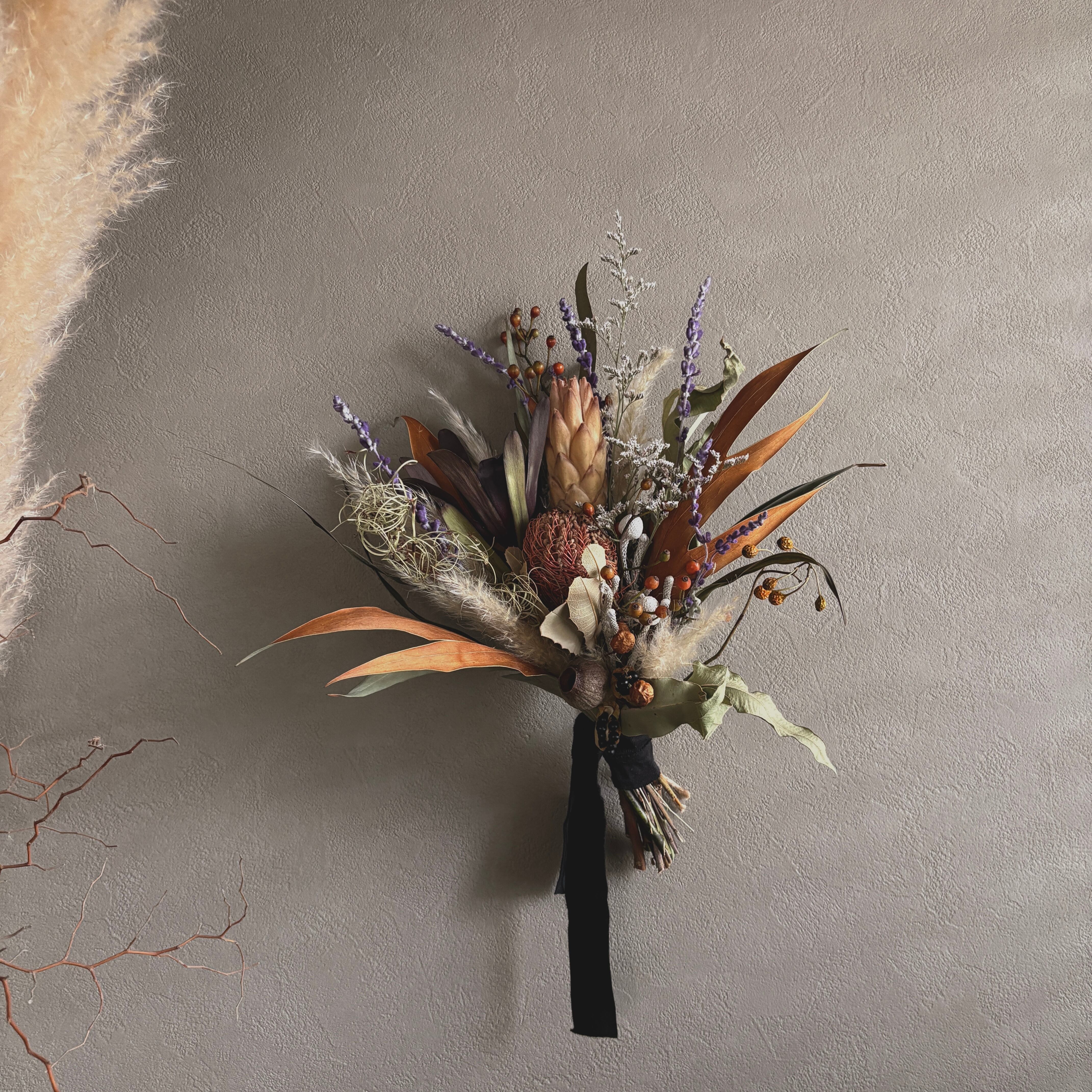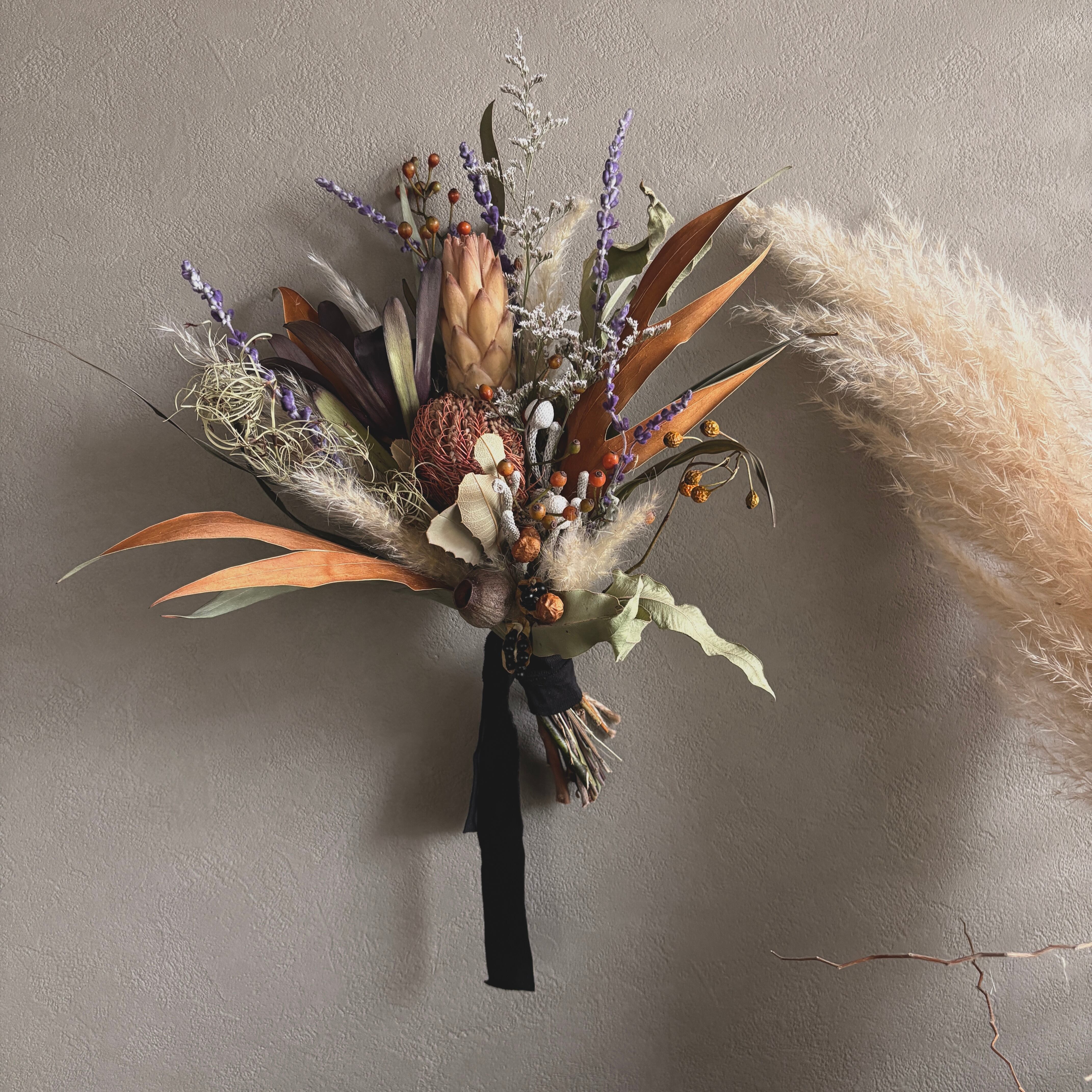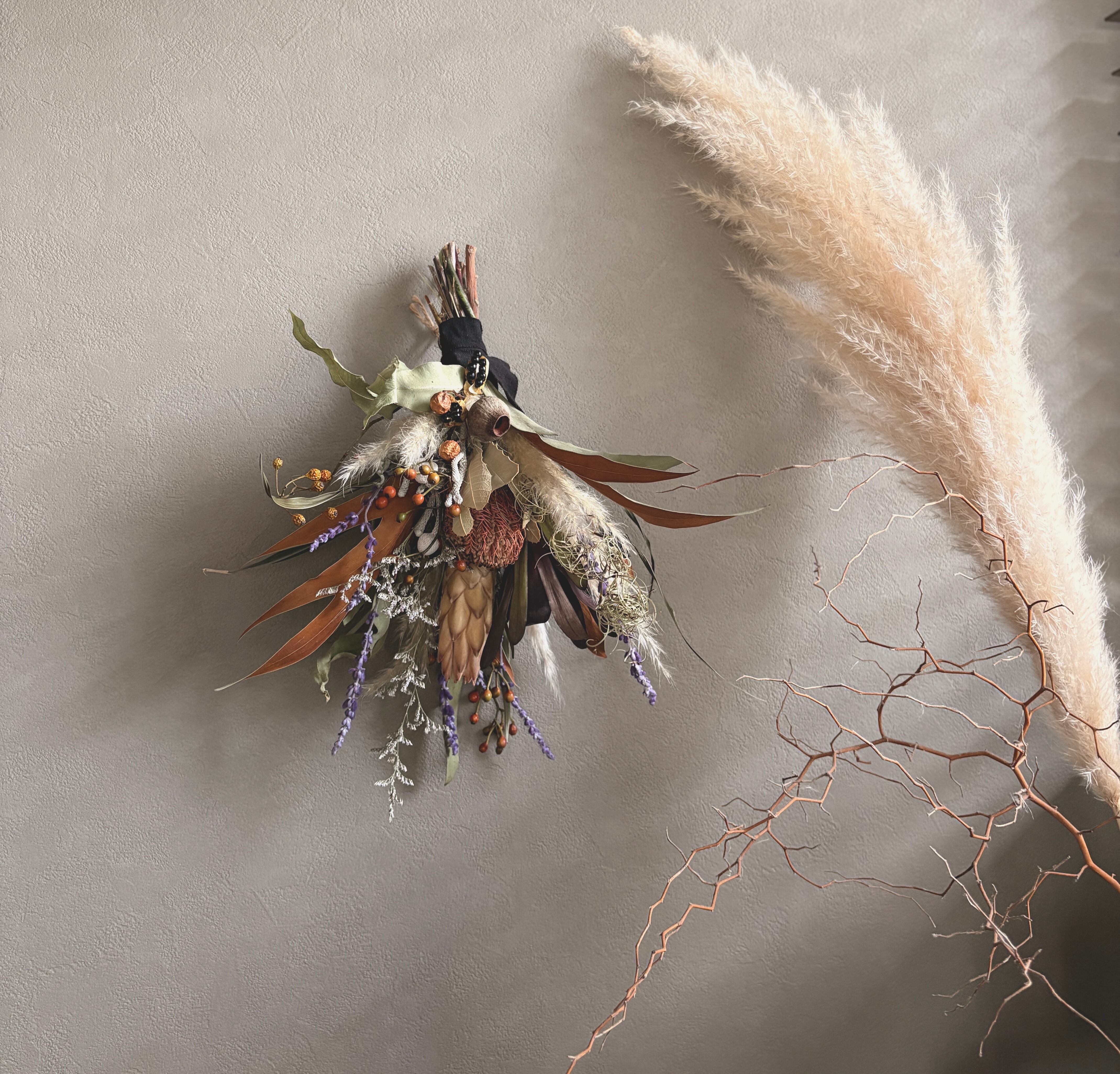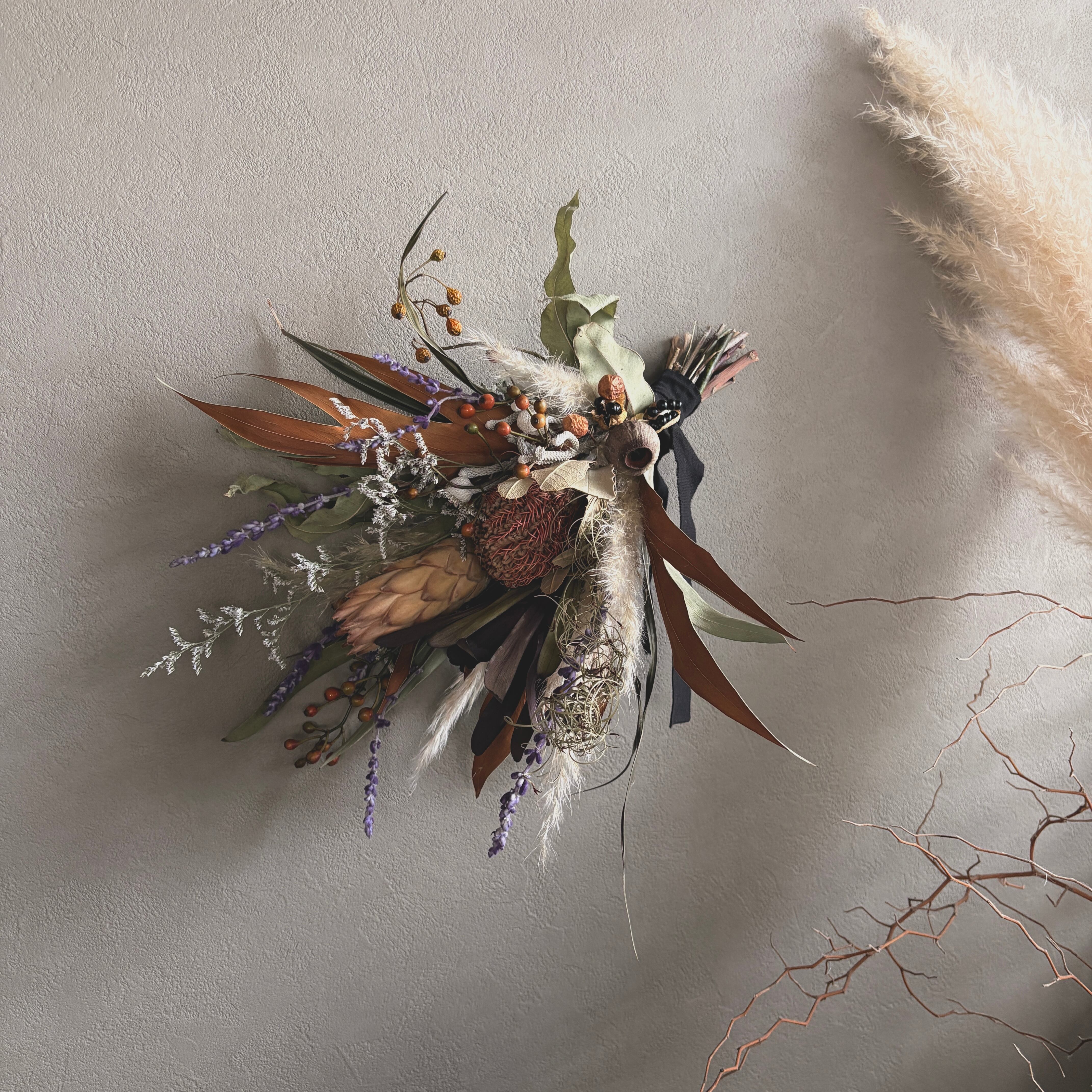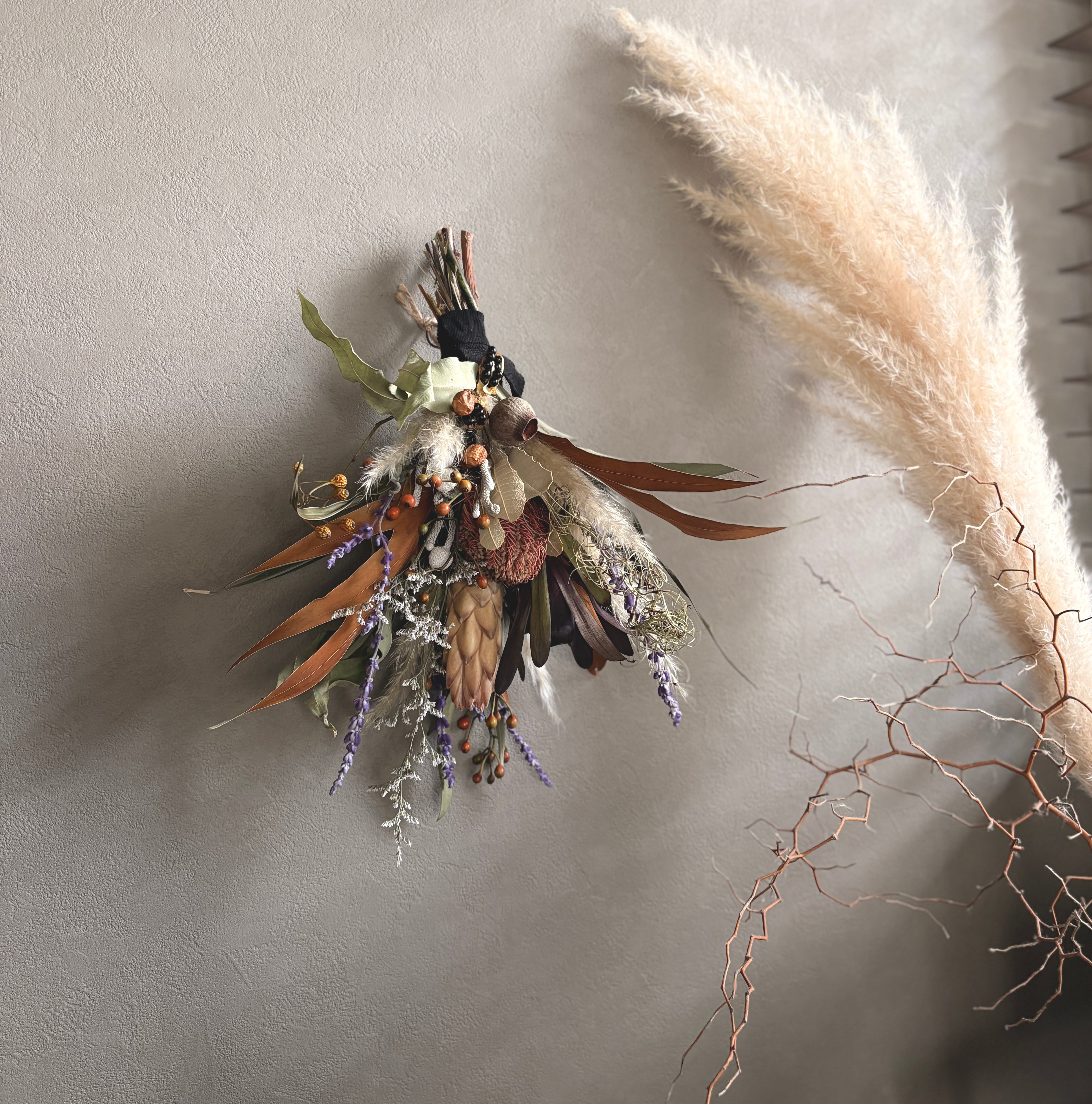 バンクシアとパンパスグラスのスワッグ