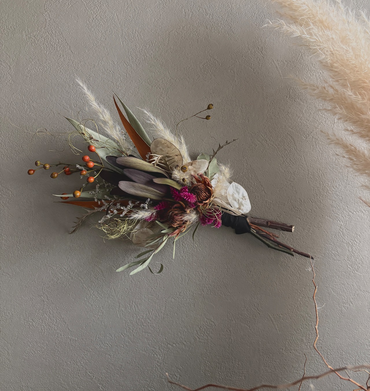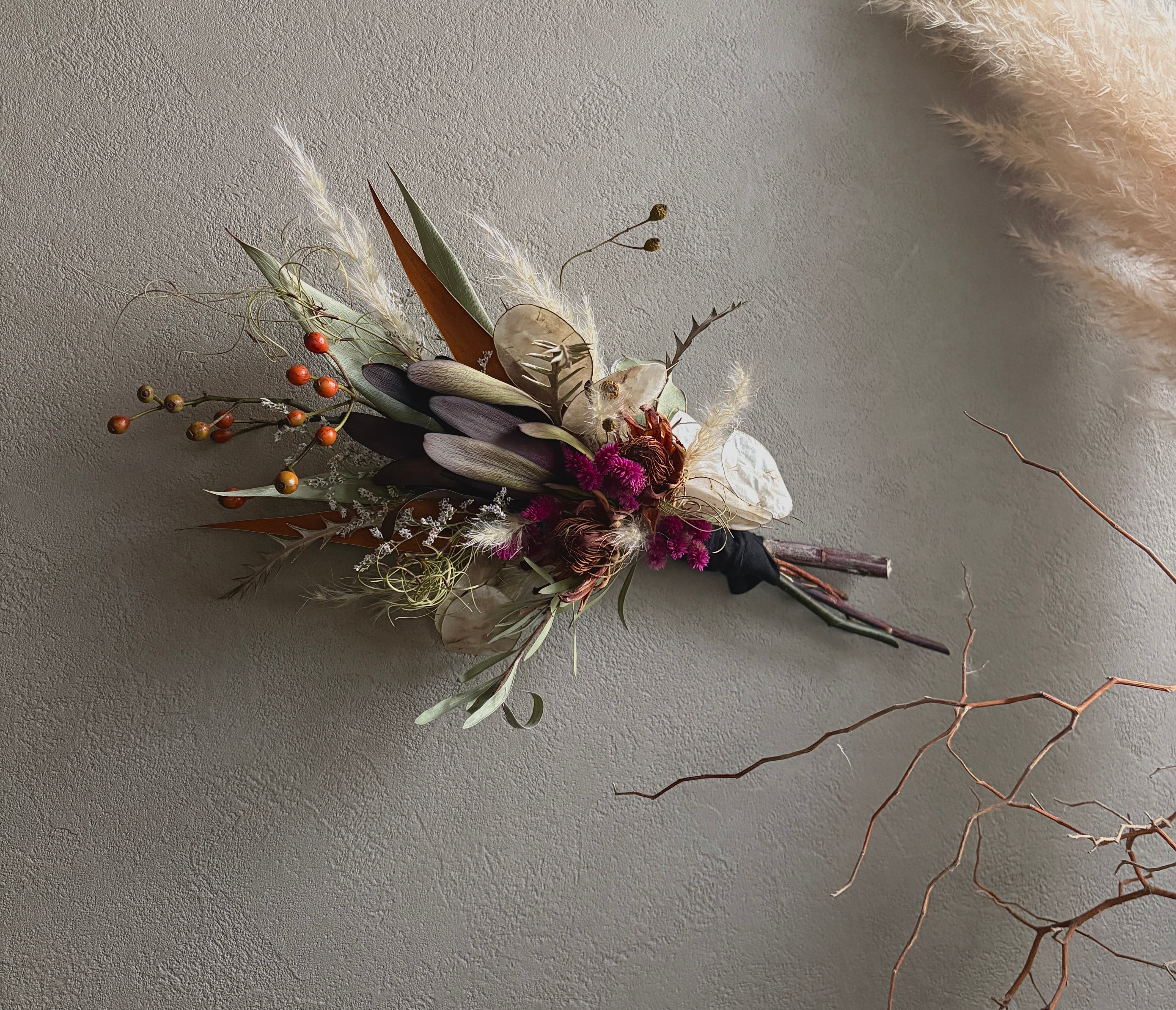 ネイティブフラワーとルナリアの秋色スワッグ。