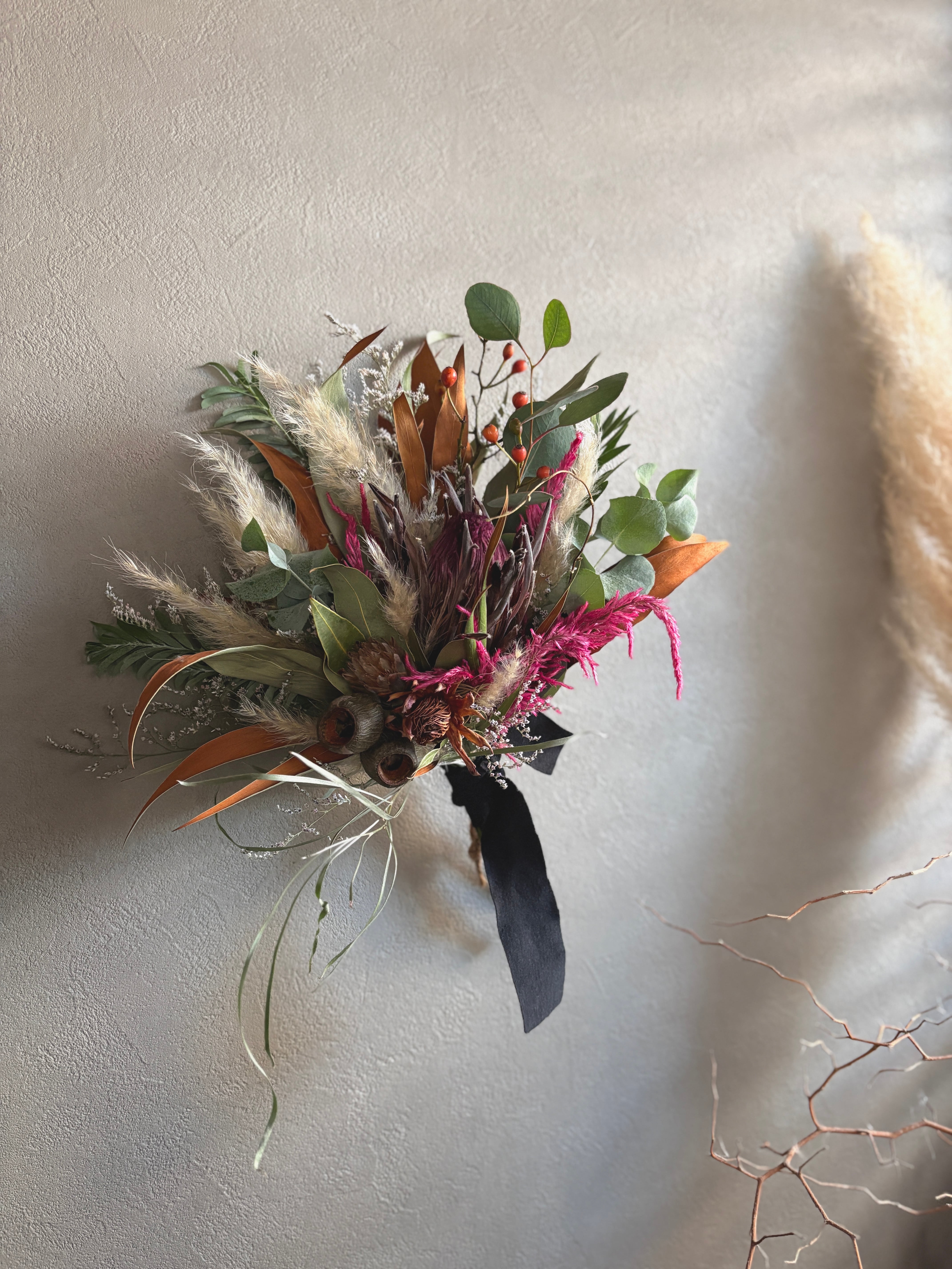プロテアとパンパスグラスのスワッグ