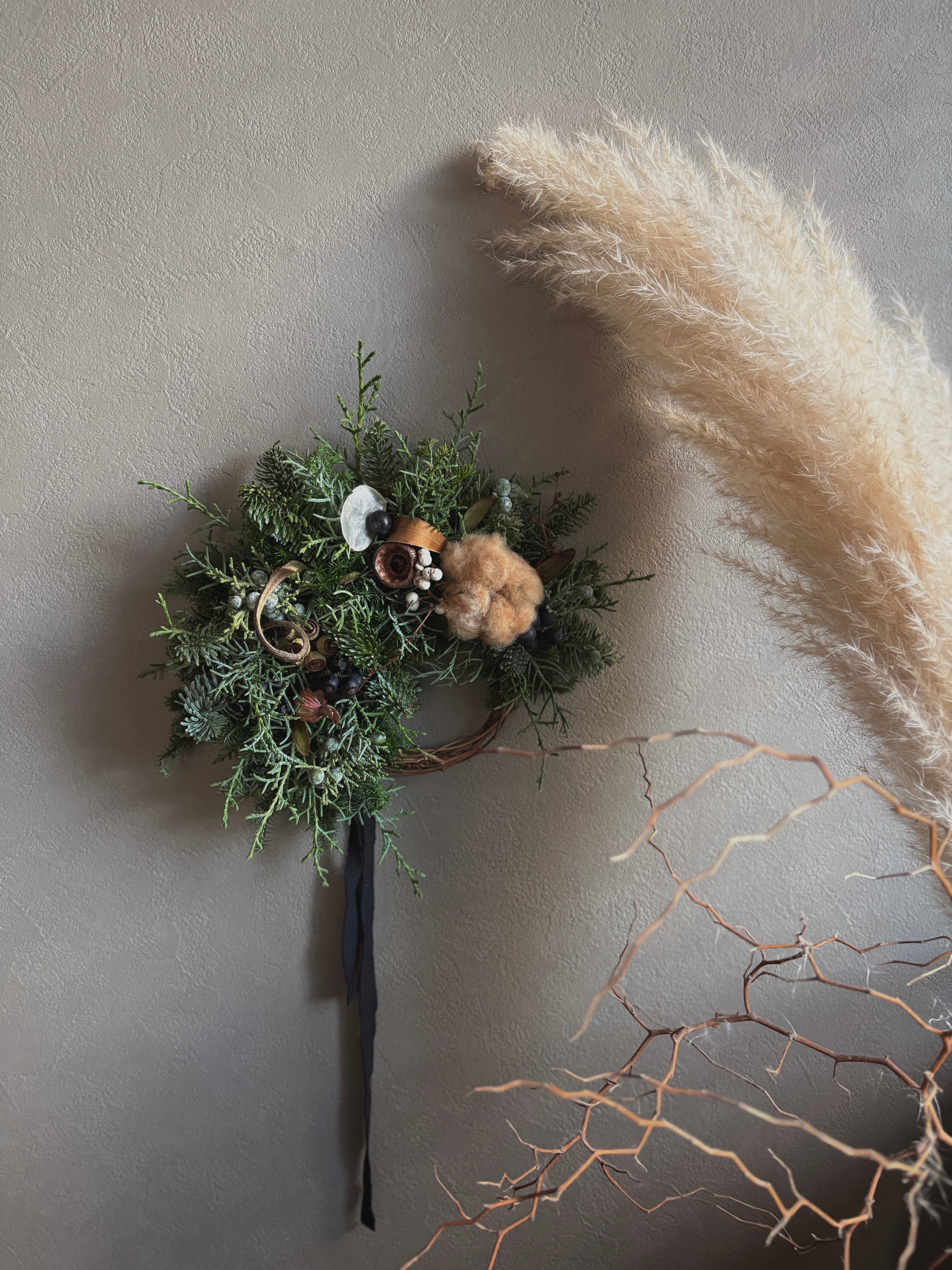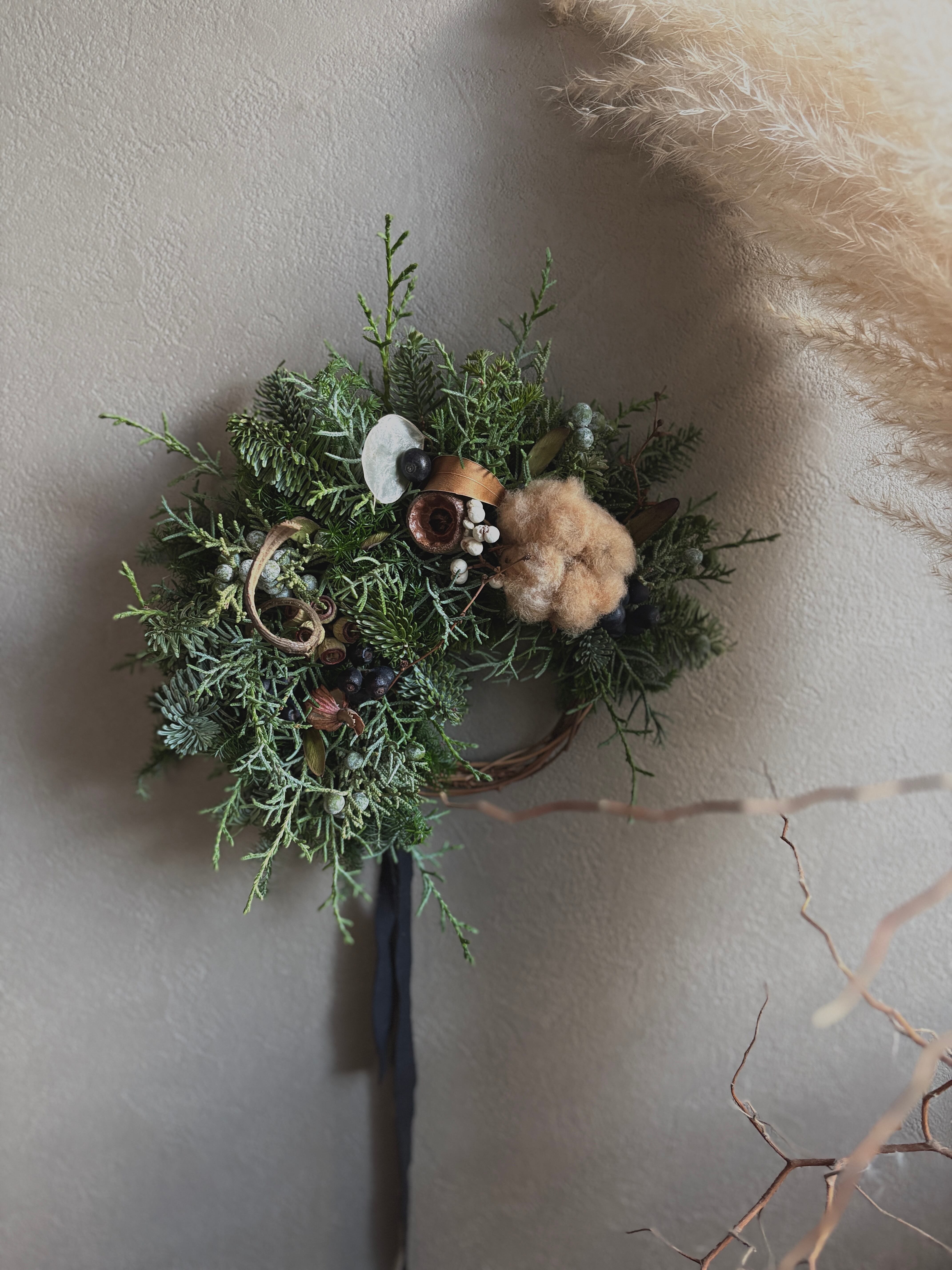 自然素材の特性により、日々色味、質感の変化が見られます。ドライフラワーならではの風合いや色合いの深まりを、ぜひお楽しみください。