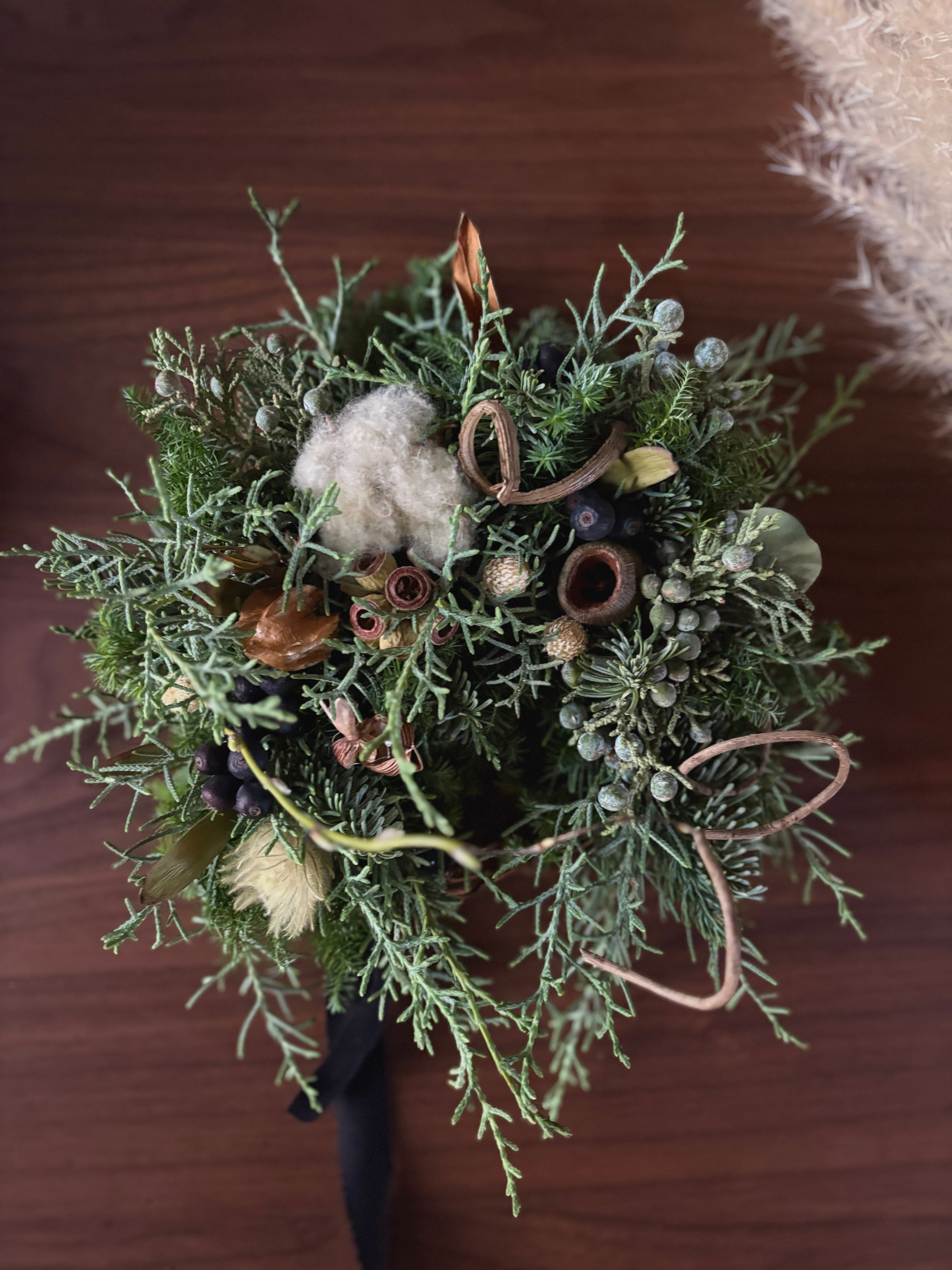 自然素材の特性により、日々色味、質感の変化が見られます。ドライフラワーならではの風合いや色合いの深まりを、ぜひお楽しみください。