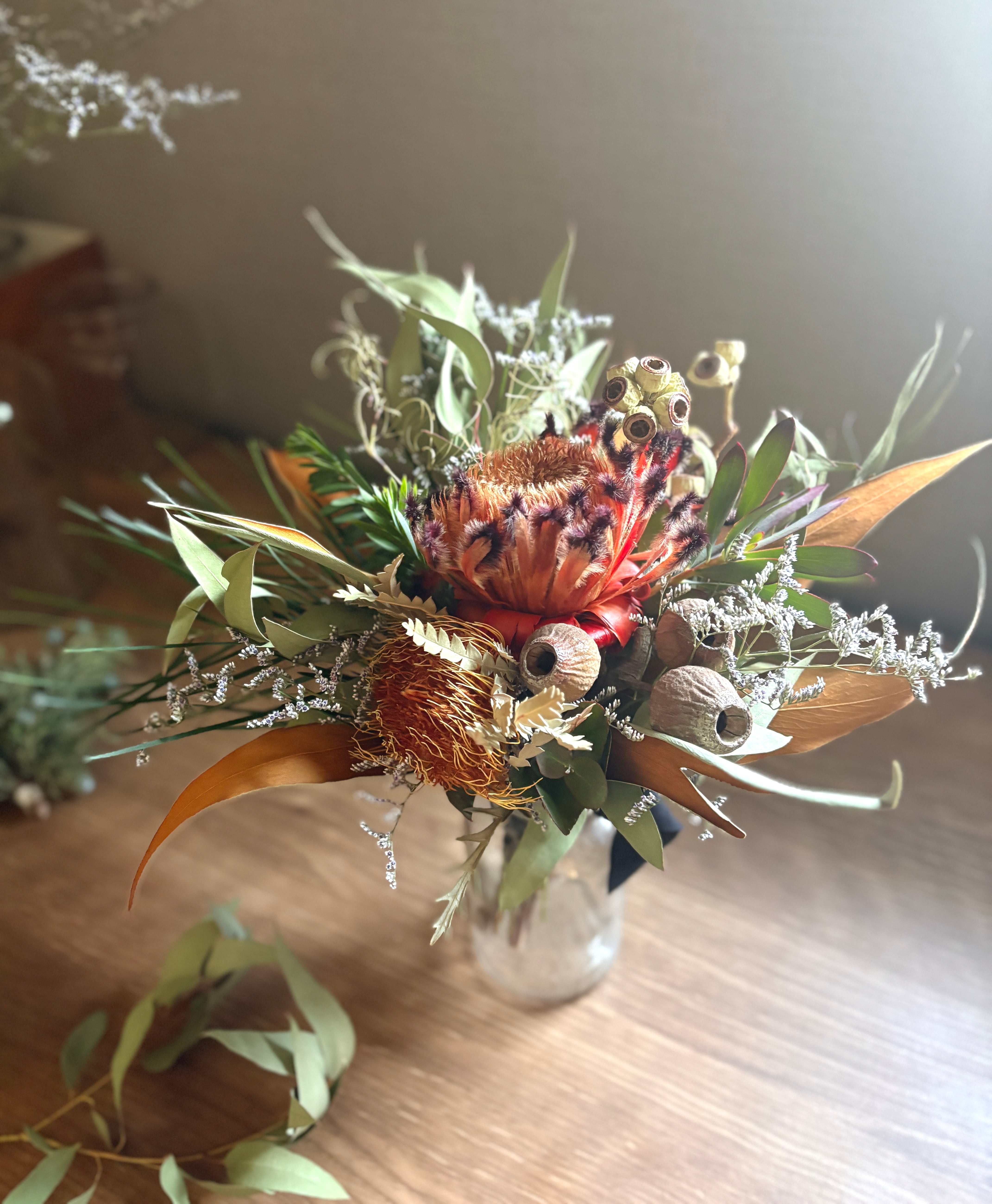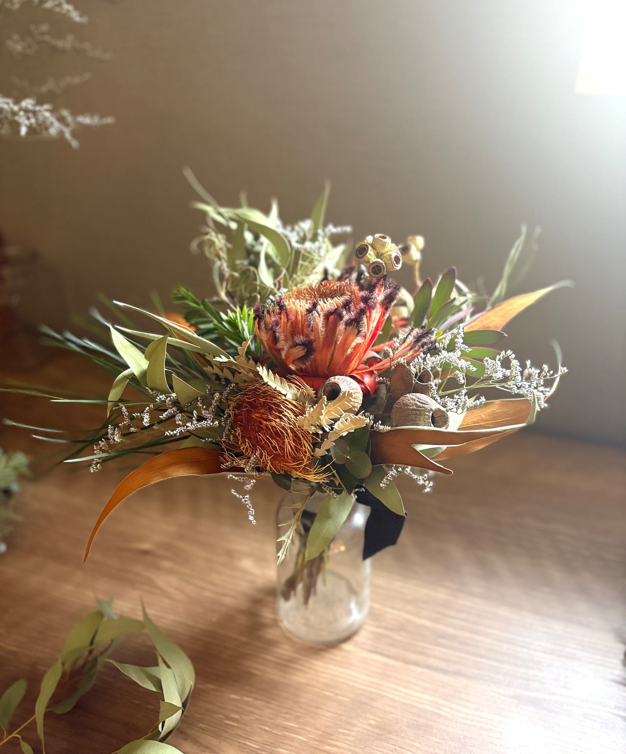 プロテアネリフォリアとユーカリのスワッグ。